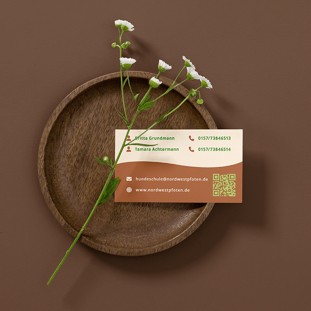 Für die Hundeschule entstand ein einheitliches Erscheinungsbild, das Modernität, Natürlichkeit und Lebendigkeit vereint. Logo, Website und Visitenkarten greifen dieselbe gestalterische Sprache auf, wodurch ein harmonisches Gesamtbild entsteht. Das Design soll Vertrauen und Sympathie ausstrahlen, zugleich aber dynamisch wirken – passend zur aktiven, naturverbundenen Arbeit mit Hunden.