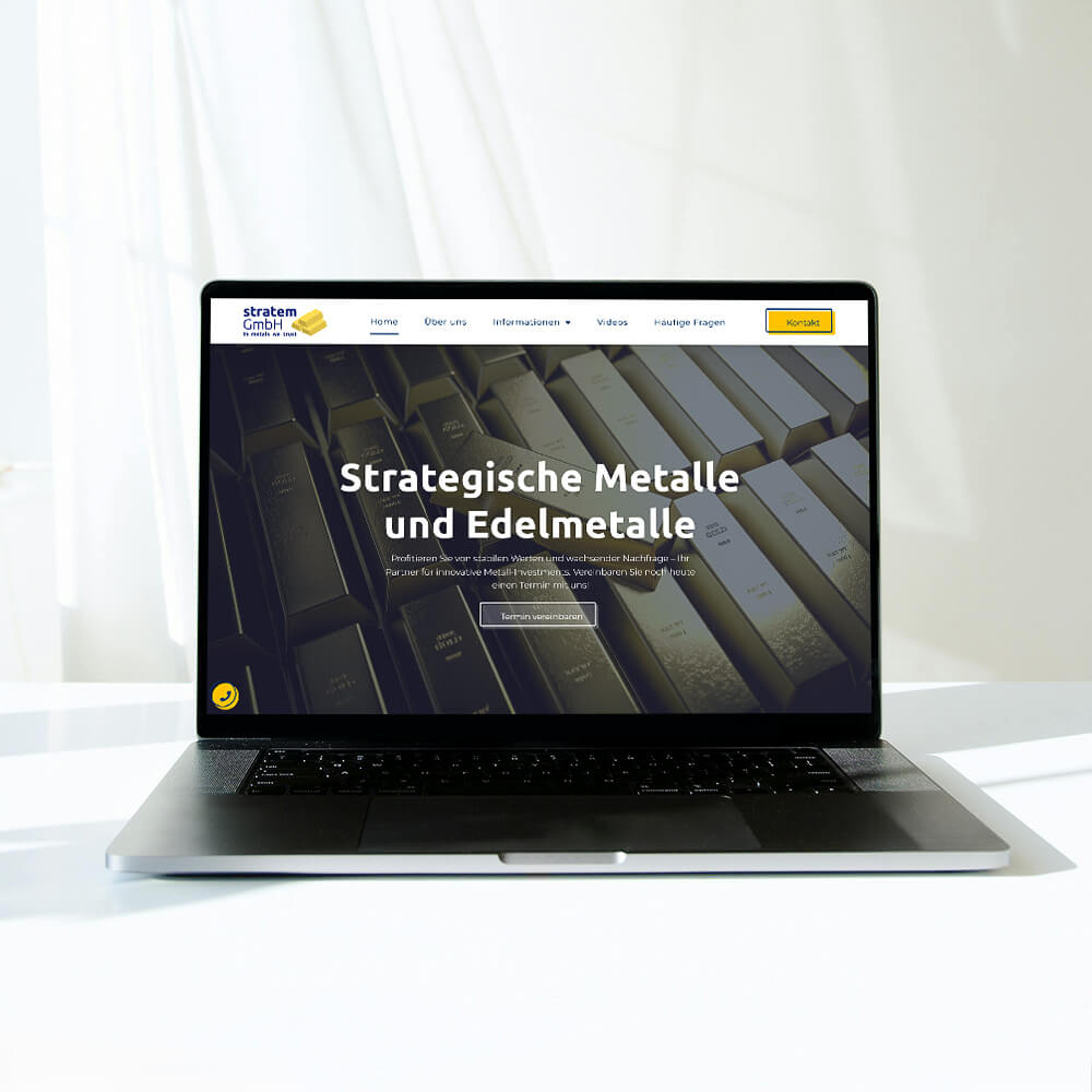 Für die stratem GmbH, einen Spezialisten für Anlagemöglichkeiten im Metallsektor, haben wir eine moderne Website entwickelt. Ergänzend dazu gestalteten wir ein prägnantes Logo und passende Visitenkarten, um einen professionellen Gesamtauftritt zu schaffen.