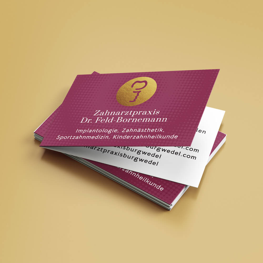 Frau Dr. Feld-Bornemann, Zahnärztin mit dem zertifizierten Tätigkeitsschwerpunkt Implantologie der DGI, ist seit 2016 Kundin bei uns. Zuletzt durften wir ihr bei der Überarbeitung ihres Markenauftritts behilflich sein.